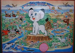 双六は現代ものもとっても面白い。平成13年は、年間で80枚以上の双六が発行されており、前年よりも増えています。キャラクターが大流行しているからでしょう。『どらえもん』も『ポケモン』も『モー娘』もある。現代文化そのものですよ。これらの現代双六は、100年後に必ず価値が出ます。皆がこの時代を知りたがるはずです。江戸時代の双六は、誰でも大切にしますが、これらの現代ものは、私が集めなければ雲散霧消するのは明らかです。間違いありません。そんな悲壮な決意で現代双六を蒐集しています。」 ・・・脱帽。先生は現代双六については、手に入る限り2枚蒐集して保存に備えておられます。世界遺産の守護仏にふさわしい周到さです。今回「翔奉庵」と「築地双六館」とで、現代双六保護同盟を締結しました(ちょっと大袈裟!)。双方が取得した双六をできるだけ提供し合うという互助の精神の条約です。これを翔築(しょうちく)条約といいます。(受験生諸君、ここんとこ、日本史の試験に出るよ!)
